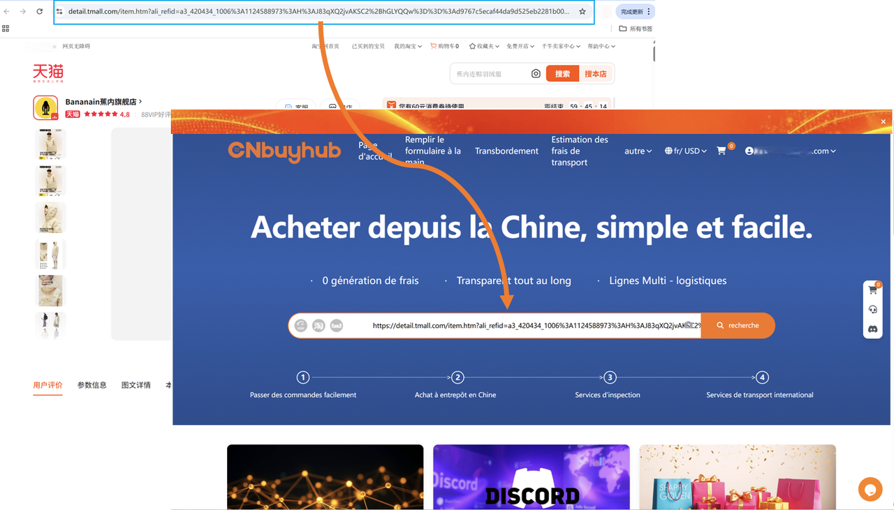 Trouvez le produit que vous souhaitez acheter, copiez le lien et collez l’URL du produit dans la barre de recherche.