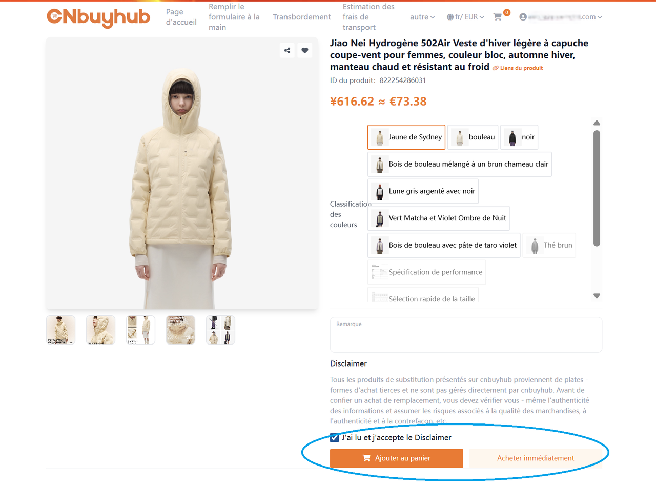 CNBuyhub can fetch information for 99% of products on Taobao, Tmall, and 1688.com. You can directly select the product’s color, size, and quantity, then click “Add to Cart” or “Buy Now.”